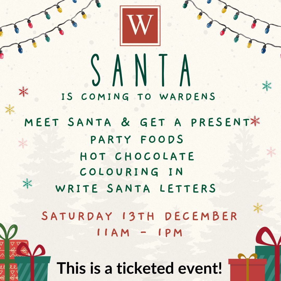 Get ticketsSanta will be in Wardens on Saturday 13th December!