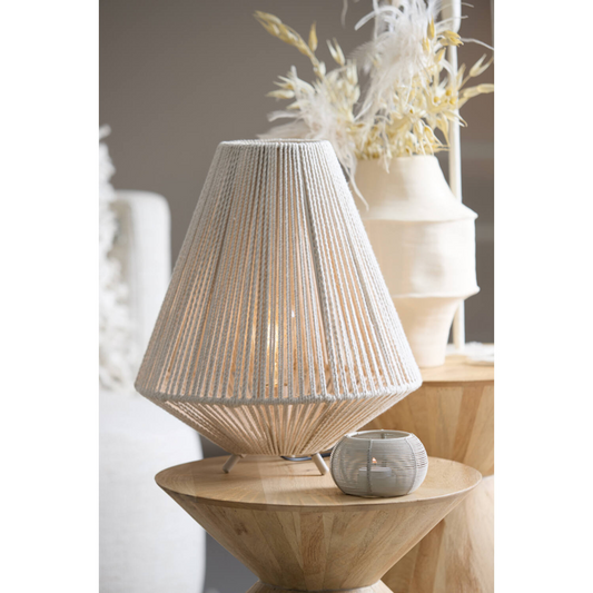 LIBRA VEDDER CREAM CONCRETE LAMP WITH GEOMETRIC PATTERN AND SHADE