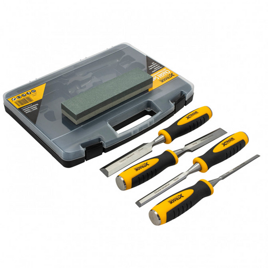 XTRADE 4PC CHISEL SET WITH SHARPENING STONE