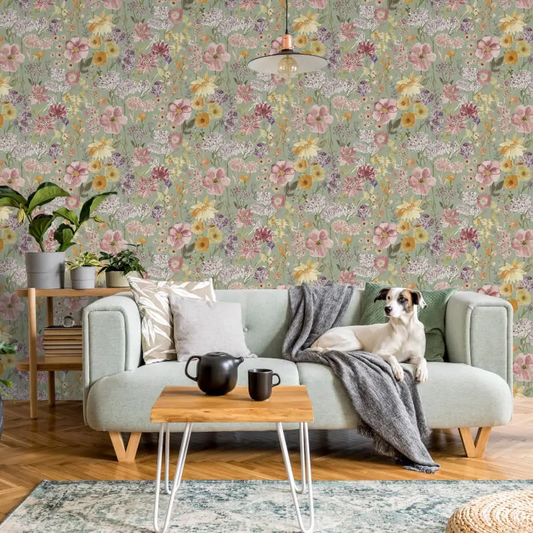 GRANDECO WILDFLOWERS FLORAL SAGE/MULTI WALLPAPER