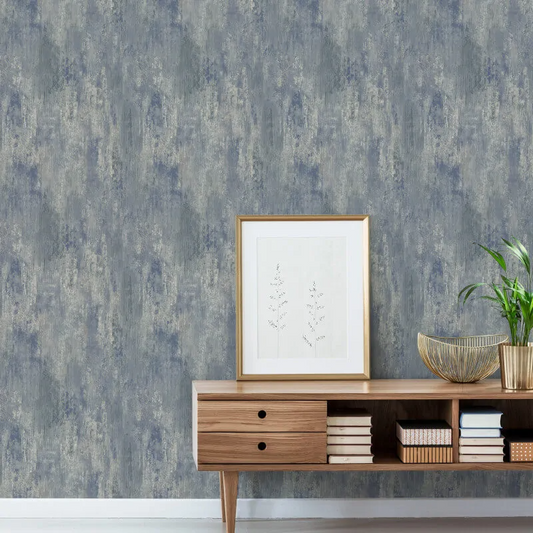 GRANDECO VINCENZO DISTRESSED BLUE METALLIC WALLPAPER
