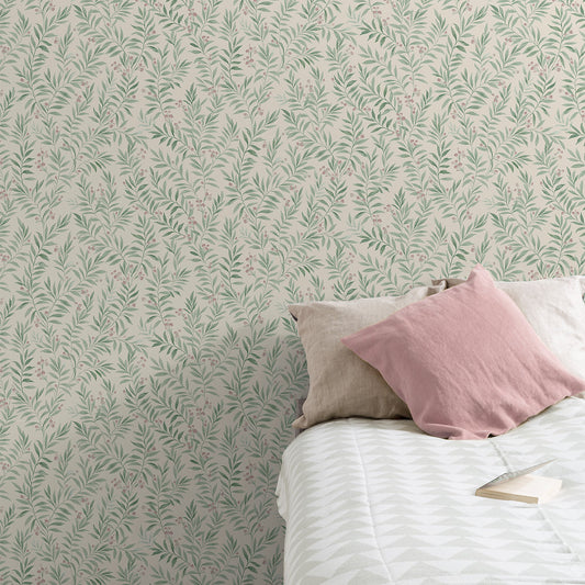 GRANDECO SAGE TRAIL FOLIAGE & FLOWERS GREEN WALLPAPER