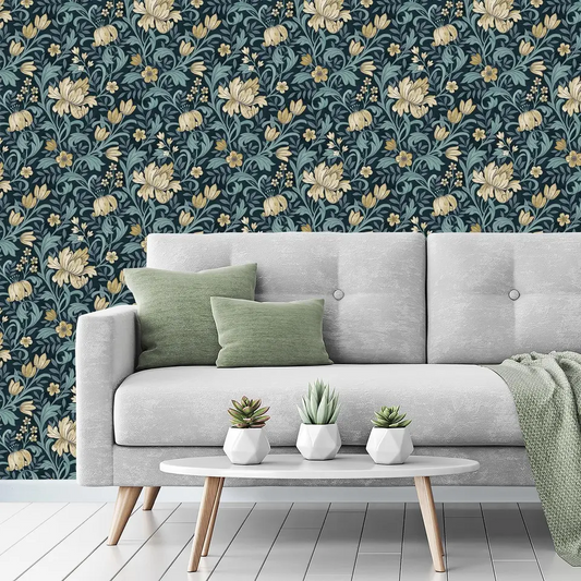 GRANDECO MARIAN NAVY & CREAM FLORAL WALLPAPER