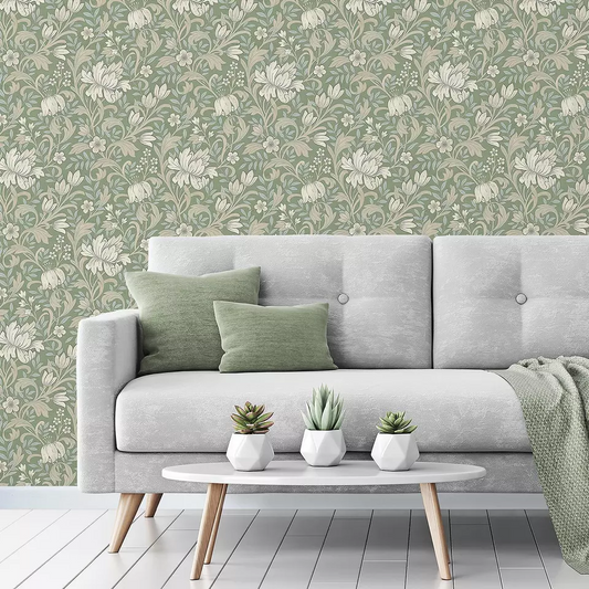 GRANDECO MARIAN GREEN FLORAL WALLPAPER