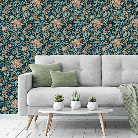 GRANDECO MARIAN TEAL & TERRACOTTA FLORAL WALLPAPER