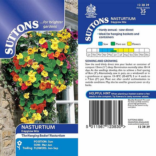 SUTTONS NASTURTIUM 'DAYGLOW MIX' (HANGING BASKET) - SEEDS