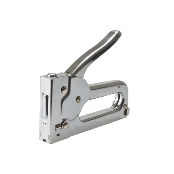 This staple gun tacker has a lightweight, compact design. Ideal for light-duty DIY work with a durable chrome finish. Features contoured handle, visual refill window, jamproof mechanism and a built-in staple lifter.
