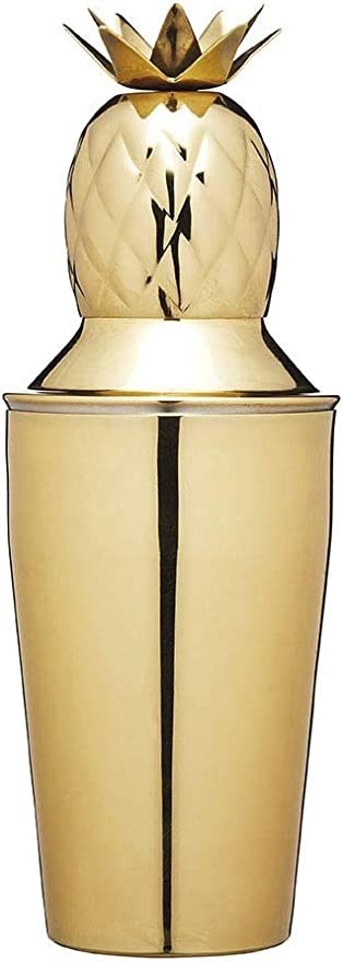 After a long day at work, by whipping up fruity cocktails in this brass coloured pineapple cocktail shaker Fans of all things pineapple, celebrate! The quirky jigger on this 'shot tail' mixer can also be used as a shot glass The shiny, brass-effect finish on this mini shaker will glow under lights and add sparkle to any party Ideal for home bars, the shaker comes with a Pineapple Upside-Down Shot recipe