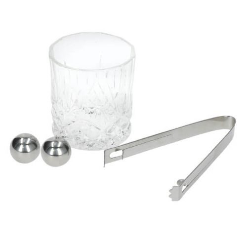 This 4 piece BarCraft whiskey set comes complete with a glass whisky tumbler, two stainless steel ice balls and a pair of stainless steel tongs. The glass tumbler features a diamond cut detailing and has a capacity of 200ml. Dishwasher safe for easy and convenient cleaning. The ice balls can be chilled in the freezer for keeping your whisky lovely and cool.