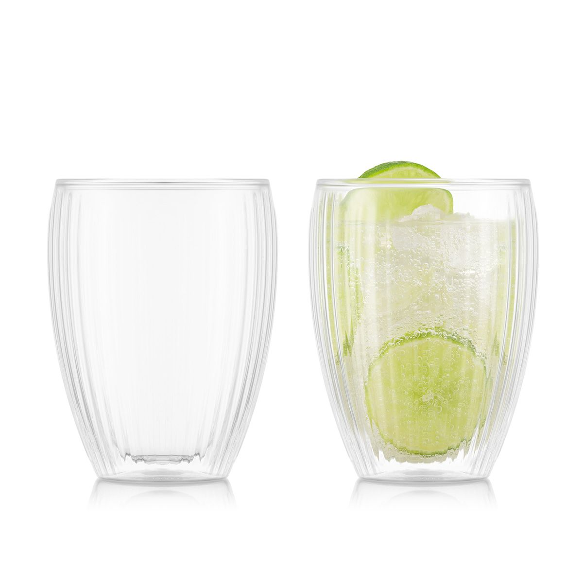 BODUM SET OF 2 PAVINA DOUBLE WALLED GLASSES WITH RIBS 320ml