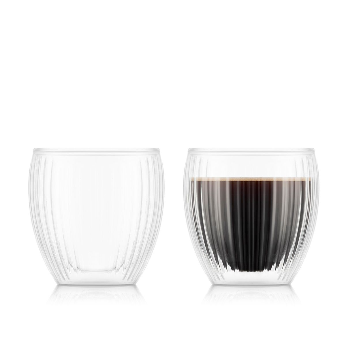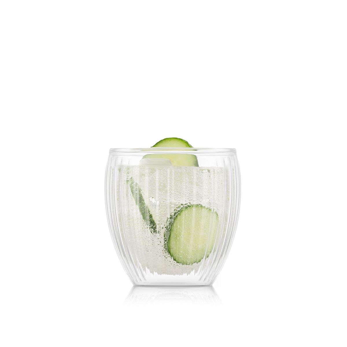 BODUM SET OF 2 PAVINA DOUBLE WALLED GLASSES WITH RIBS 200ml