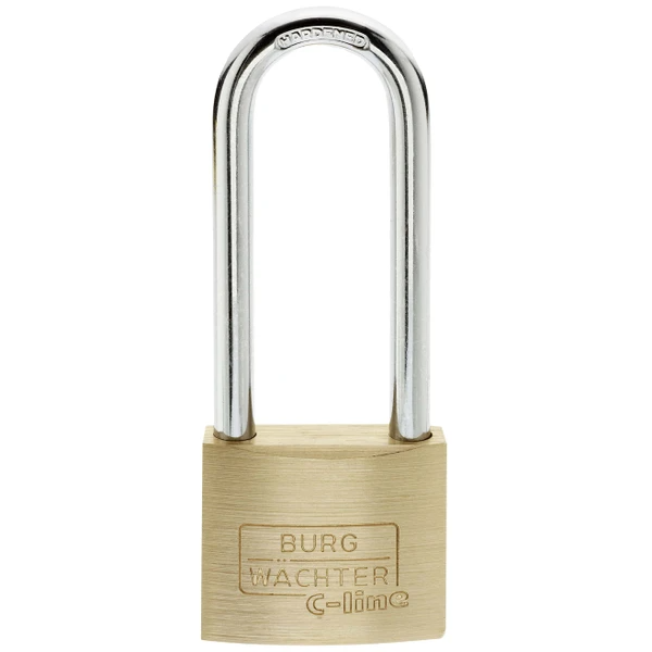 Burg Wächter solid brass padlock with a 65mm long shackle. Ideal for securing gates, sheds and lockers.