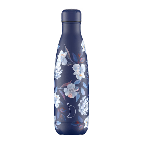 CHILLY'S 500ML BOTTLE FLORAL FLEURS BLEUES