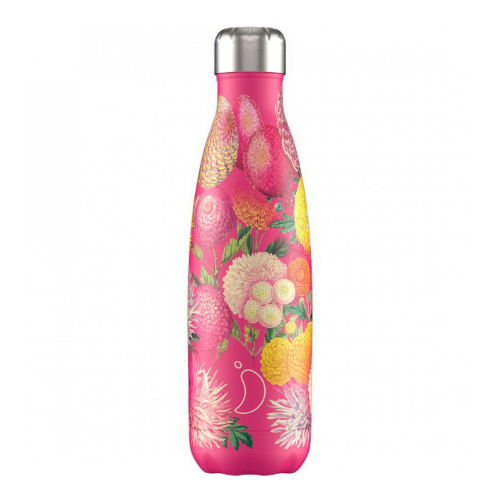 CHILLY'S 500ML BOTTLE FLORAL PINK POMPOMS