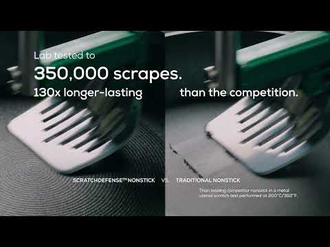 Unleash a revolution in scratch resistance and unbeatable Non-Stick performance and longevity with ground-breaking ScratchDefense™ technology that applies aerospace-grade durability to eliminate scratching, sticking, and flaking for our most advanced Non-Stick yet.
