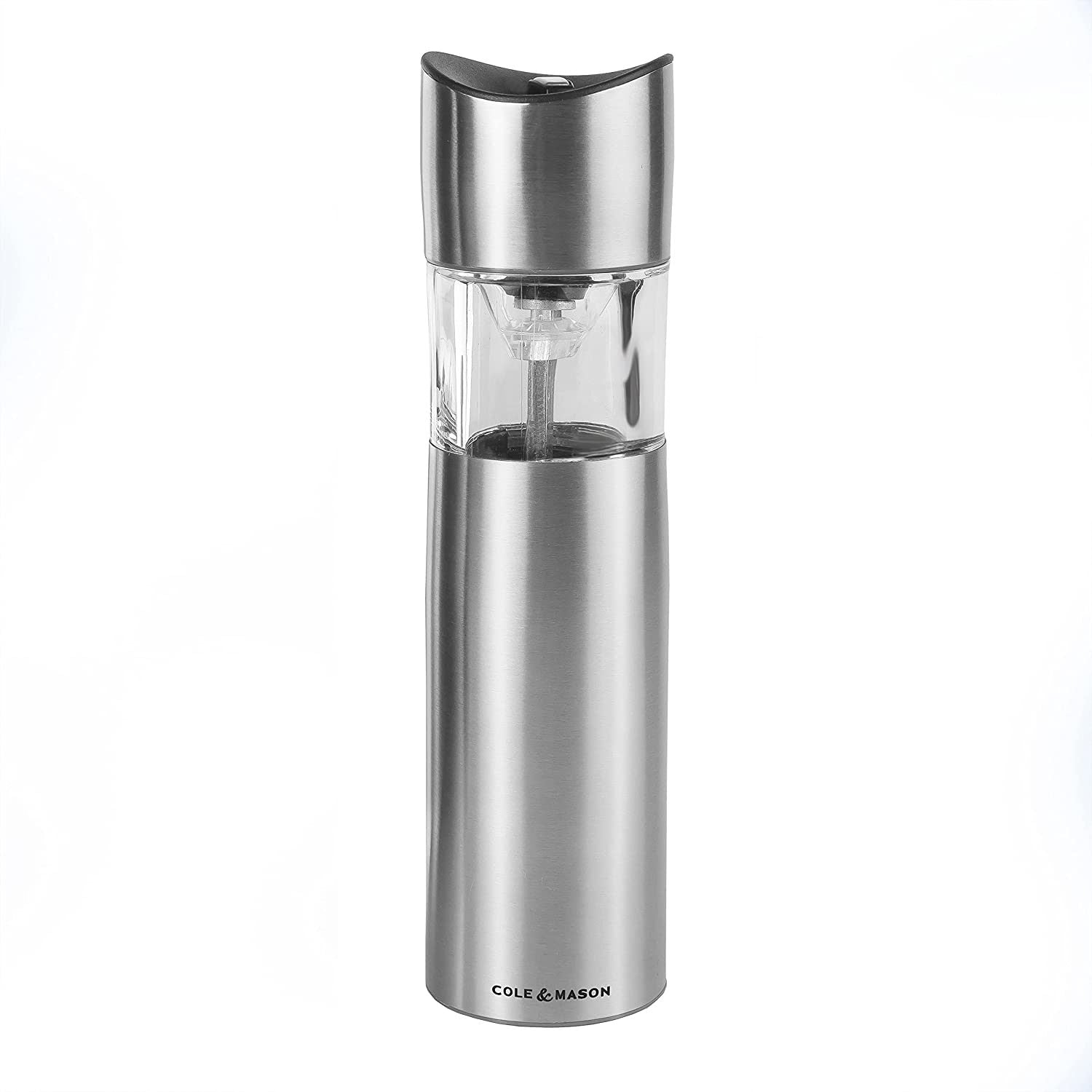 The epitome of Cole & Mason style and elegance The perfect balance of outstanding performance and beautiful design No more mess on your worktops with the mechanism at the top of the mill Featuring Cole & Mason Precision mechanism with diamond cut ceramic mechanim for grinding of salt and pepper Grind is fully adjustable Motion activated electric mill - simply invert to grind 6 x AAA batteries required (not included) To clean, wipe with a damp cloth and use a clean cloth to dry We recommend you do not use any cleaning products as this can affect the finish of the product Do not immerse in water or place in a dishwasher All Cole & Mason salt and pepper mills are covered by our lifetime mechanism guarantee Should your mill not meet the high standards and expectations of Cole & Mason products we will be happy to replace your mill for an alternative of equivalent value Accidental breakage, poor care and damage from misuse are not covered