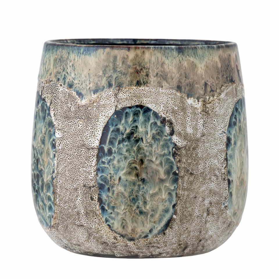 The Cophia Flowerpot by Bloomingville is hand painted in a rustic design in shades of blue and grey. The flowerpot is painted with a beautiful abstract pattern. Due to the nature of the glaze and item being handcrafted, color variations may occur.