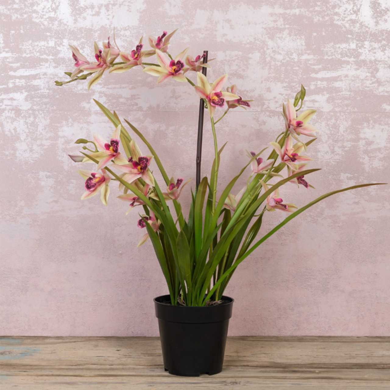 Just when you thought orchids couldn’t get any more captivating… Meet the cymbidium: a beautiful variety of such delicate perfection it’s tempting to get one for every room. Our Faux Cymbidium Orchid features spiky green leaves topped with yellow tones, providing the backdrop for the multiple flowers, each carefully crafted to make the most of the exotic colour palette. A charming artificial orchid plant that will make a statement with minimal effort.