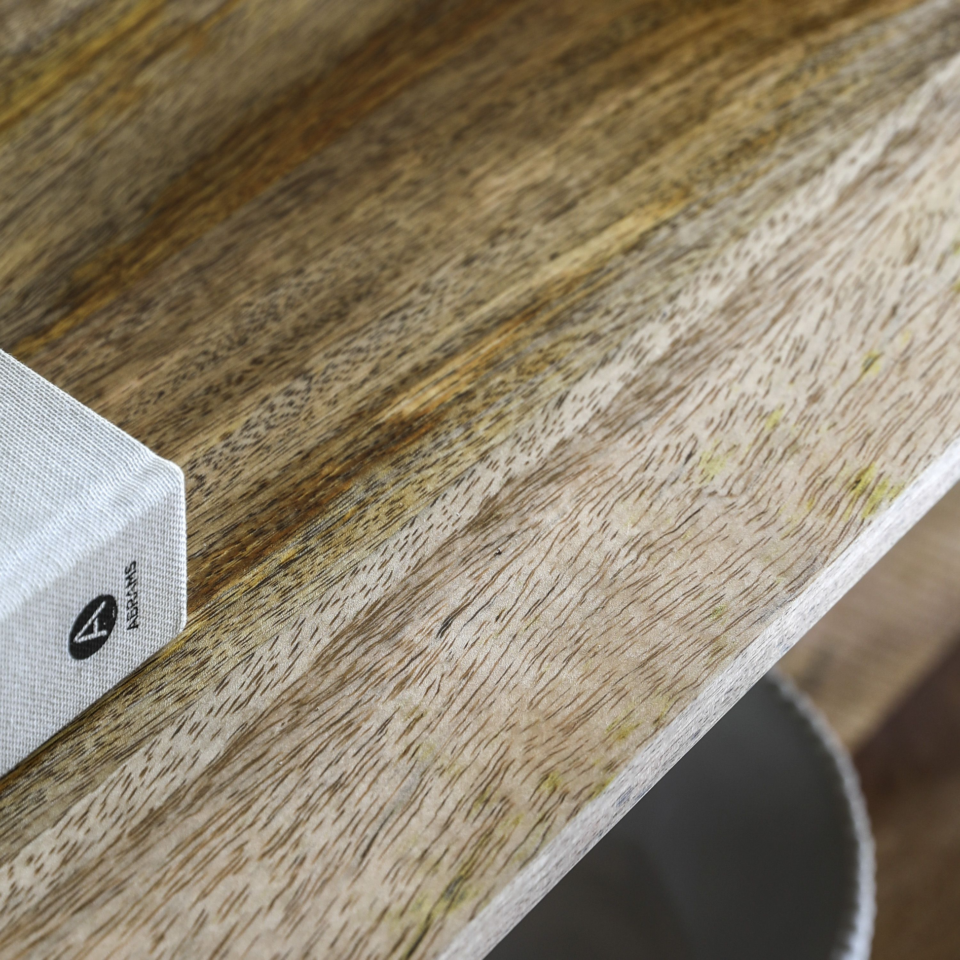 This stunning sideboard offers unusual stylish design. Crafted from solid mango wood, with a natural finish to show the grain, it features slats along the back, curving around the sides to the front. Black stud detailing on the slats adds the finishing touch.