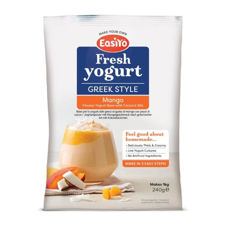 Greek Style decadence meets tropical bliss. Smooth and sumptuous yogurt, with the lovely sweet flavour of mangoes and chewy texture of real coconut bits. A lush equatorial escape (for your taste buds at least).