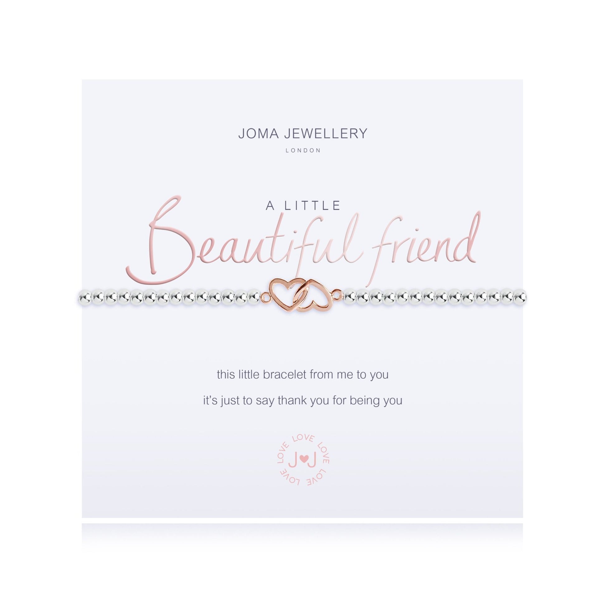 Looking for the perfect present for your bestie? Our stunning 'A Little' Beautiful Friend Bracelet is as pretty as it is meaningful. Threaded with silver-plated beads and decorated with gorgeous rose gold-plated charms, this stretch style bracelet provides a comfortable fit, now and forever. Perfect as a 'Just Because' gift, this precious treasure shows your appreciation in the most thoughtful way.