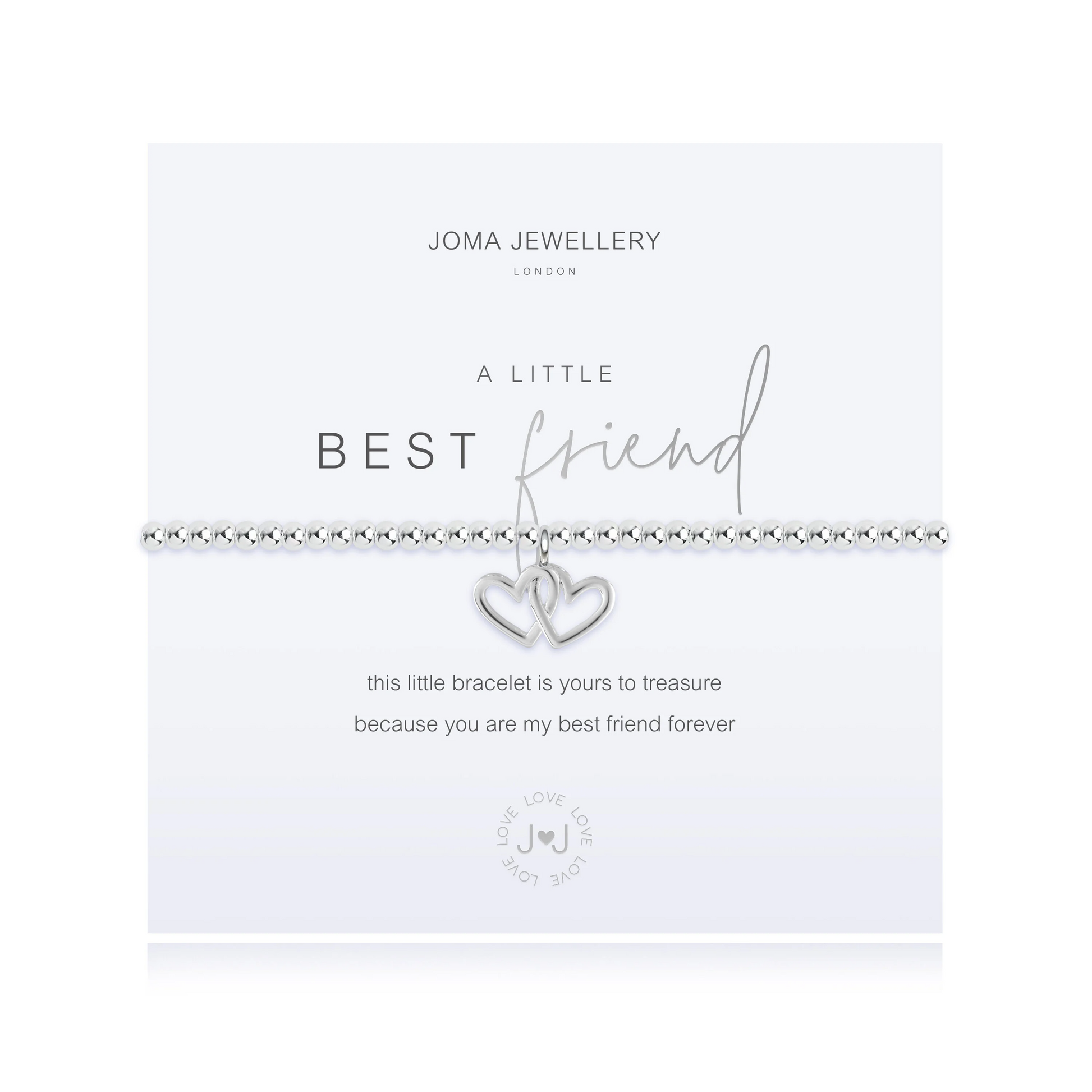 “This little bracelet is yours to treasure, because you are my best friend forever” Treating your best friend for their birthday or ‘just because’, our A Little ‘Best Friend’ Bracelet was designed to be cherished forevermore. Representing the love between you and your best friend, a gorgeous silver-plated dangling heart-shaped charm sits pretty on our timeless stretch bracelet that is designed to fit every wrist.