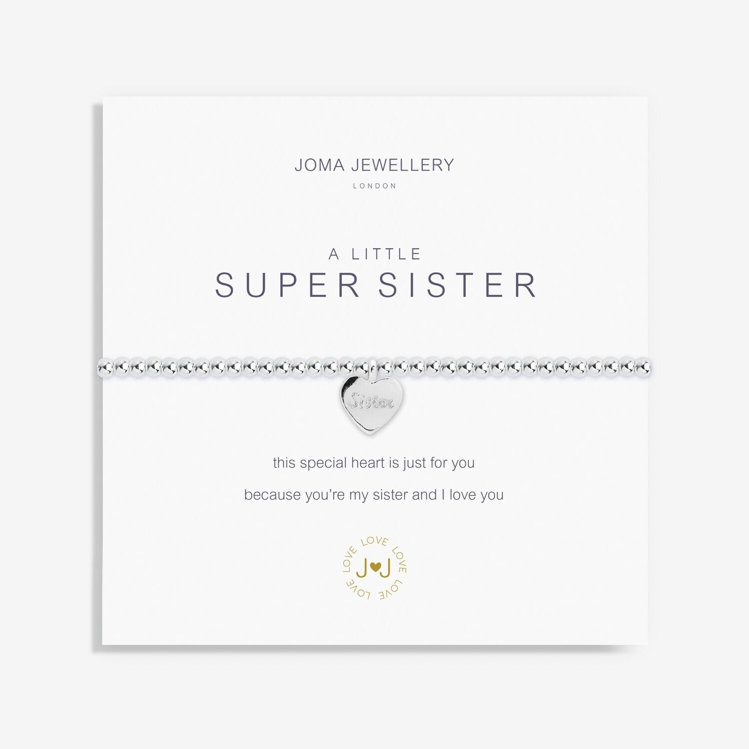 Treat your Super Sister to one of our 'A Little' Bracelets! Classic silver-plated beads sparkle alongside an adorable little charm, a simple design that appeals to all kinds of jewellery lovers. Perfect for big birthdays or little celebrations, this lovely bracelet will sparkle on her wrist as a pretty reminder of you. Wrapped around a stylised card and signed with an adorable poem, this bracelet is brimming with meaning.
