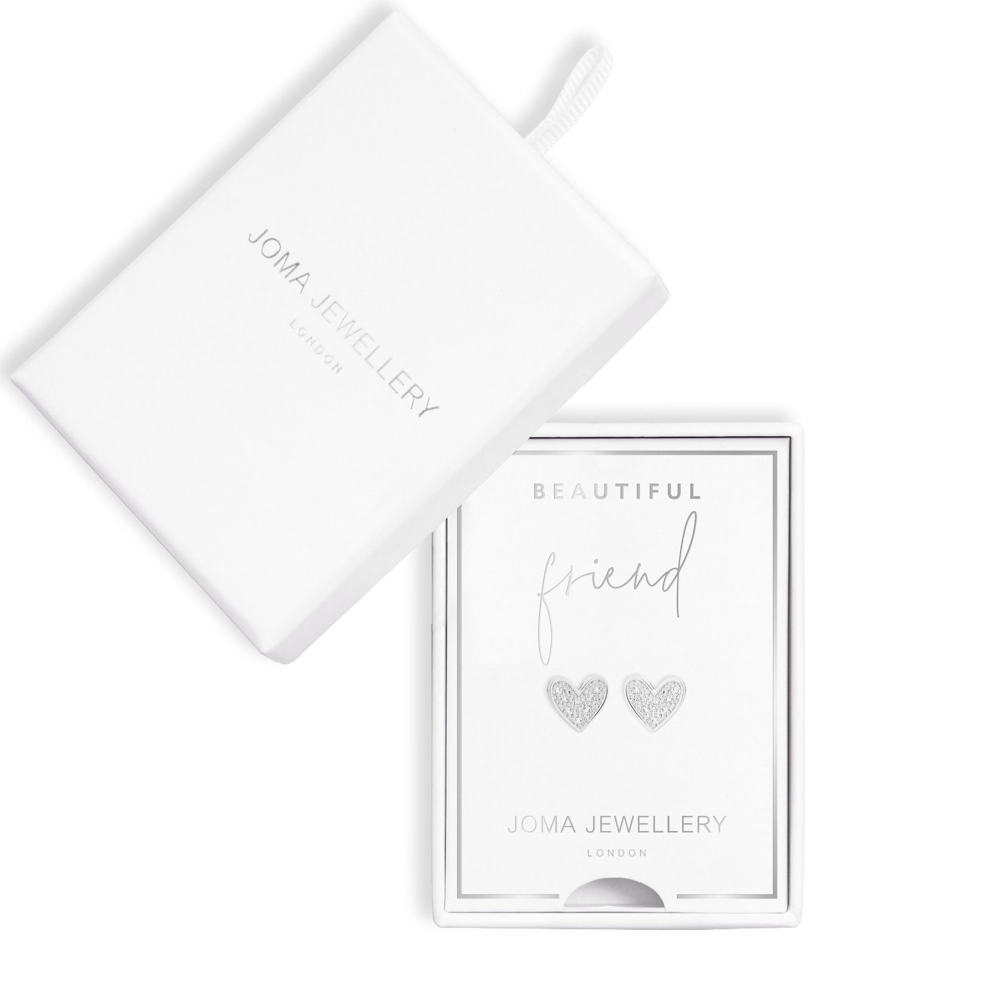 We adore our twinkling 'Beautiful Friend' Treasure The Little Things earrings! Silver-plated embellished heart studs are nestled inside the most precious little gift box and stamped with a sweet sentiment, ready and waiting to put a smile on a loved one's face this season.