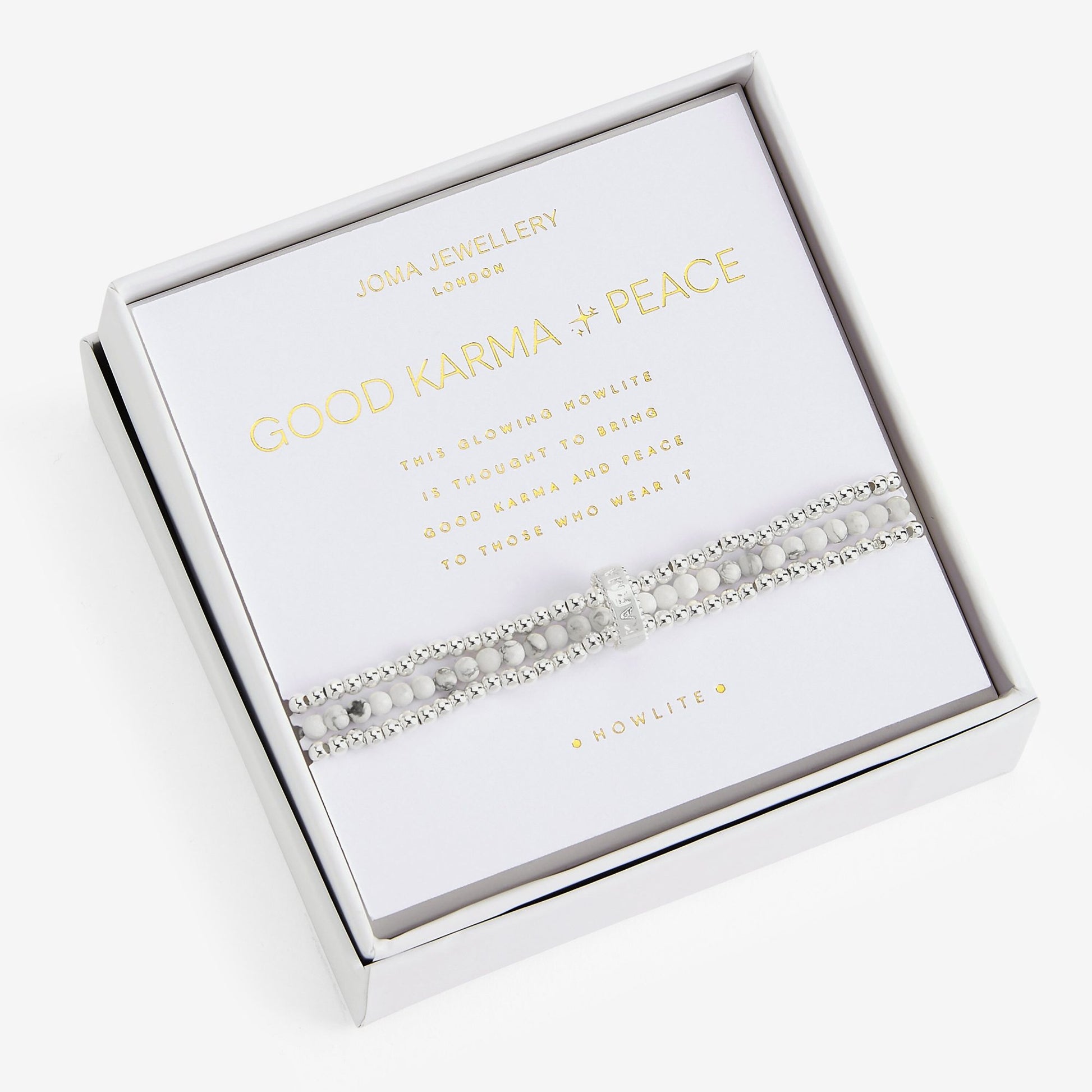 Our Wellness Stones collection was designed to uplift and inspire. This Howlit Bracelet was inspired by the meaning behind the Howlite gemstone, which brings good karma and peace to those near it. Threaded with natural semi-precious Howlite gemstones, this triple bracelet is secured with a circular charm representing peace.