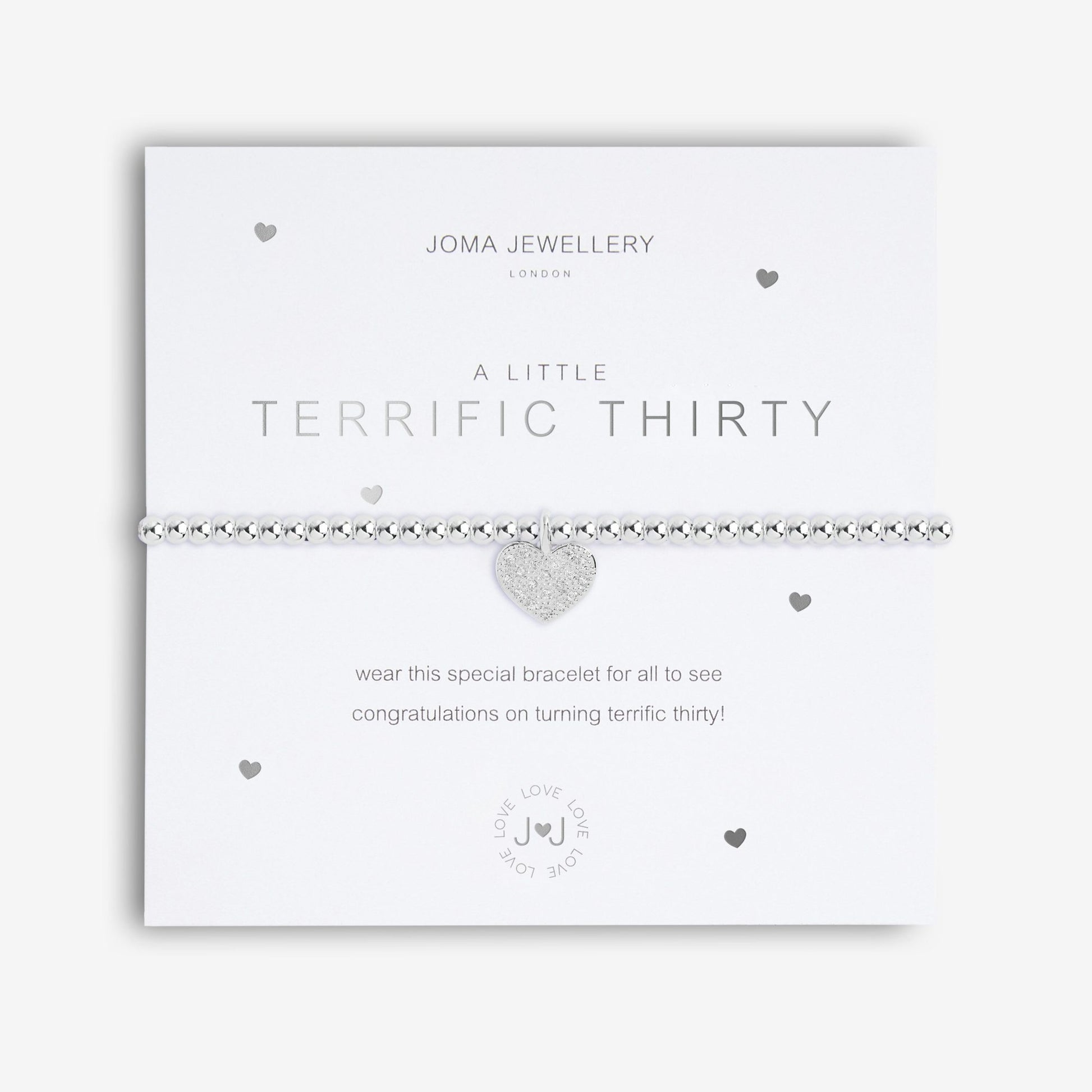 Find a perfectly pretty present for their 30th Birthday with our A Little 'Terrific Thirty' Bracelet. This silver-plated design showcases our signature stretch bead style, embellished with a sparkling heart-shaped charm. As always, the bracelet is wrapped around one of our lovely cards and finished with an adorable poem.