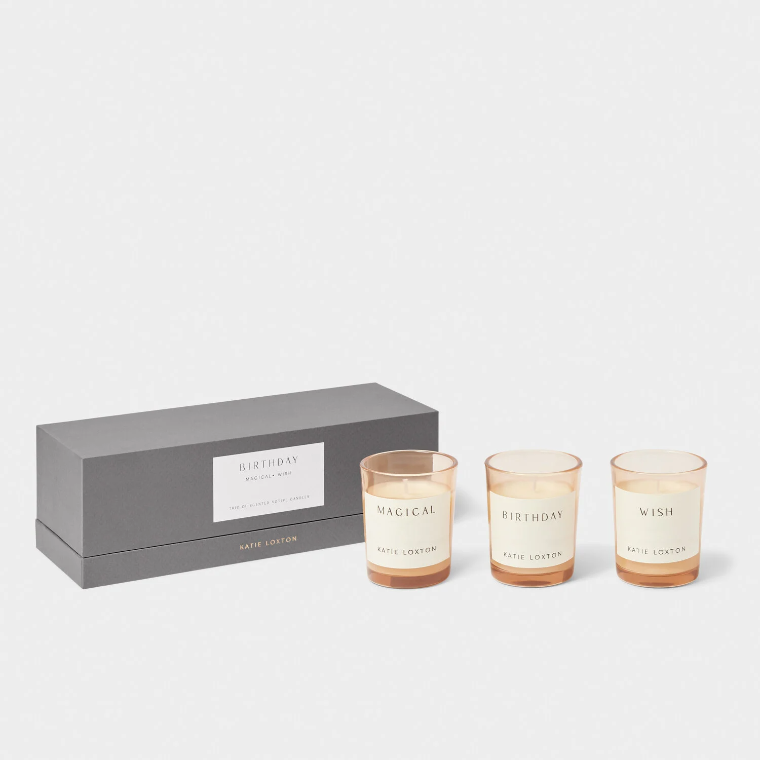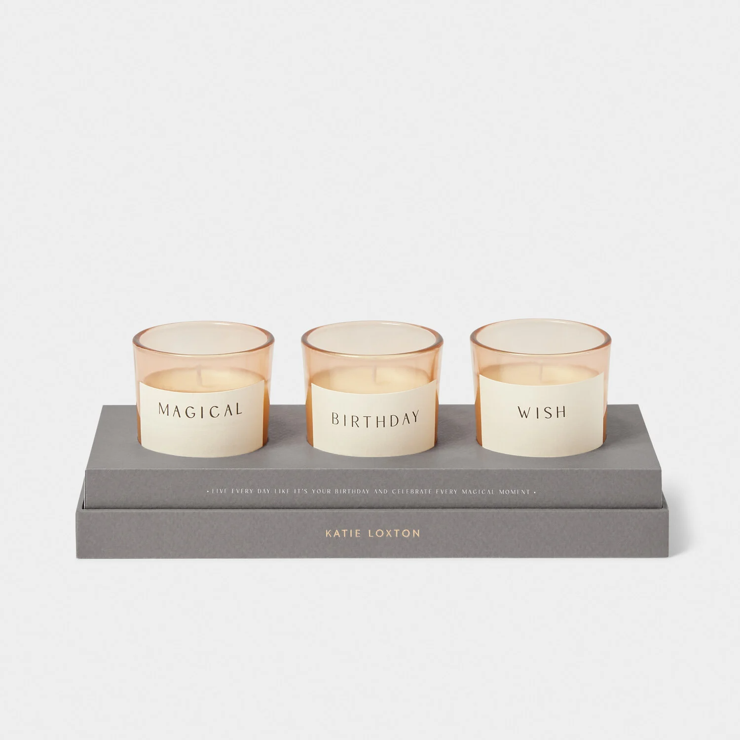 KATIE LOXTON TRIO CANDLE VOTIVE SET 'BIRTHDAY'