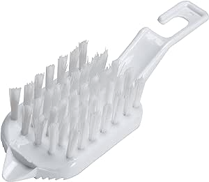 The handle is designed to be easily stored. With a hanging hook, this tool can be hung on your kitchen wall or behind a cabinet door for easy access. This vegetable cleaning brush is easy to clean and is dishwasher safe, making cleaning as simple as using the gadget!