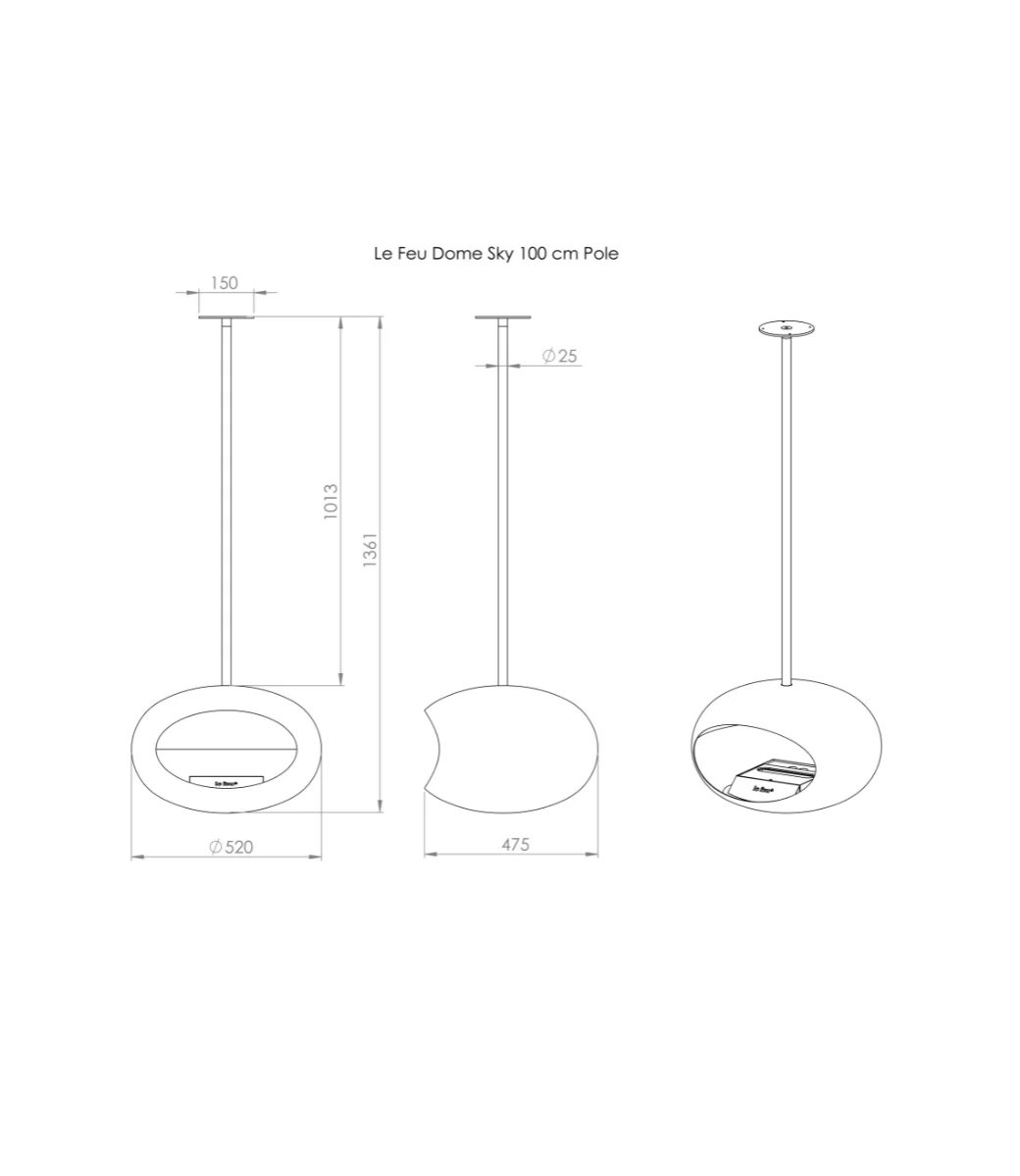 Sky is characterised by its unique ceiling suspension, which makes the fireplace look light and elegant.