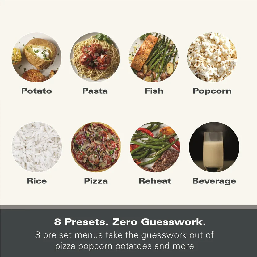 Easy to Use: Digital LED display with 60-minute timer and 8 pre-set programs (pizza, popcorn, etc.). Express cooking function for fast meal prep.