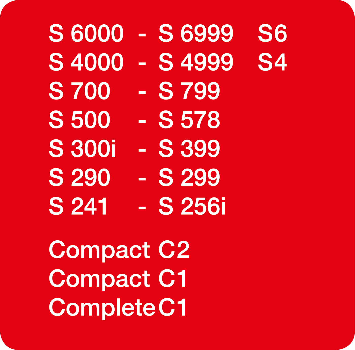 - Incl. for Complete C1, Compact C1, Compact C2, S6, S4