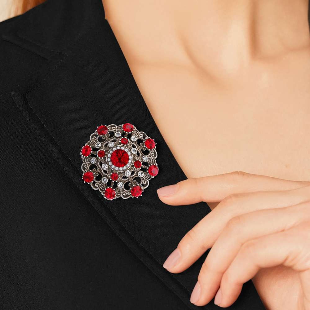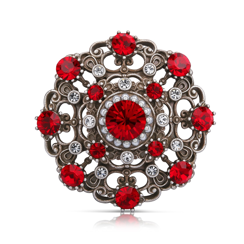 Create a glamorous look with this timeless antique silver plated brooch from Newbridge Silverware. Adorned with faux pearl, clear and ruby crystal stone settings this brooch is great for emulating a classic feel making it the ideal gift for one who adorns sophisticated style and elegance.