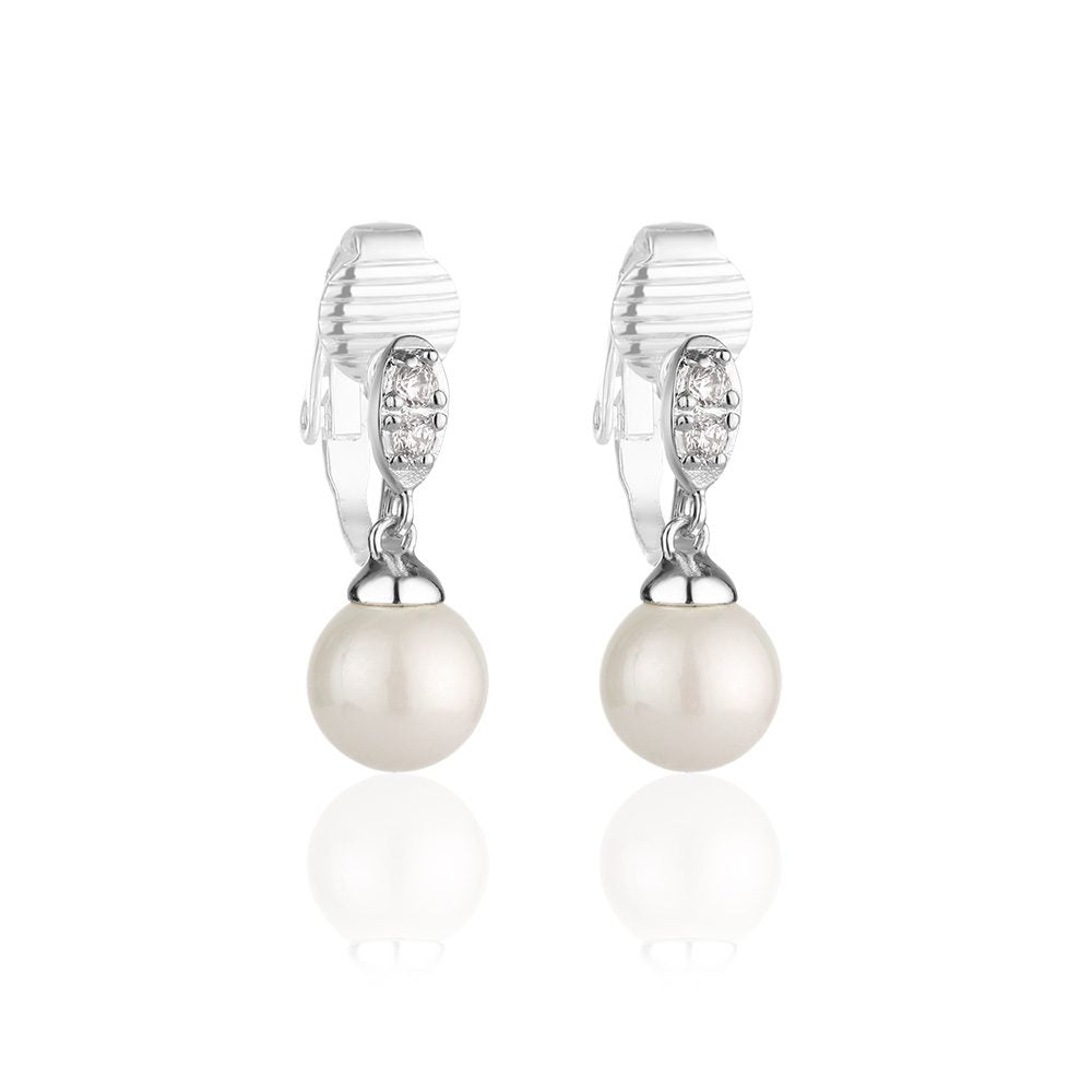 These silver plated clip on earrings from Newbridge Silverware are an elegant wardrobe essential. The combination of the clear Cubic Zirconia stone settings paired with the elegance of the pearl bead make these earrings delightfully feminine and appealing, Great for special occasions or everyday wear.