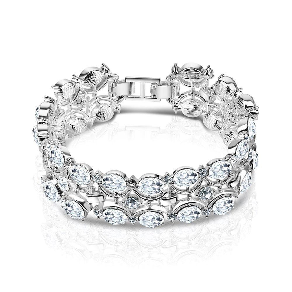 Silver Plated with a Protective Anti Tarnish Layer Classic Design Clear Crystal Stone Settings Double Row Bracelet Detail Presented in our iconic Newbridge Silverware Gift Box