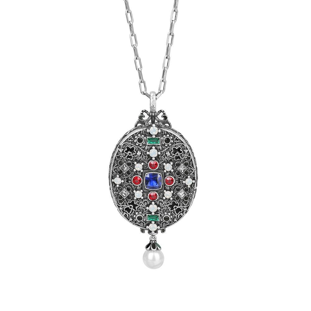 NEWBRIDGE ORNATE LOCKET WITH COLOURED STONES