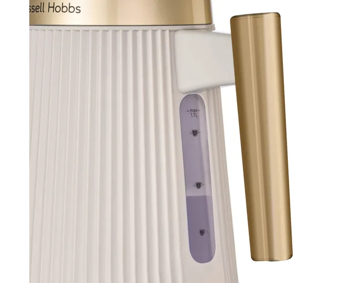 The Russell Hobbs Brontë Kettle Stone is designed to stand out while you settle in for a cuppa. Stylish design, gold brushed stainless-steel accents, and its stunning interior illumination come together to make this kettle a focal point for your kitchen. With a perfect pour spout, push-to-open lid and 360 o base with cord storage, this kettle will serve you well