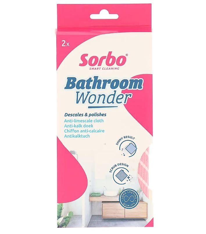 Discover the ultimate cleaning convenience with the Sorbo Bathroom Wonder Cloths. These unique double sided microfibre cloths feature an anti-limescale cloth with two sides, the rough side helps to remove limescale and the soft provides streak-free cleaning. They work with or without cleaning products and are suitable for use on bathroom surfaces such as taps and tiles. And when they get dirty, simply toss them in the washing machine up to 40 degrees for easy cleaning and maintenance.