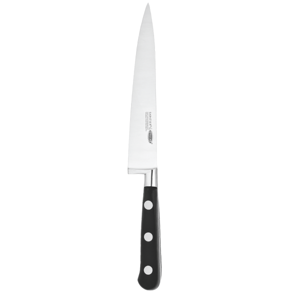 Hone your kitchen skills with this professional-grade Stellar Sabatier IS Flexible Carving/Fileting Knife. The slim, flexible blade will fillet fish, debone meat or poultry or cut wafer-thin strips or slices. This stainless steel knife offers exceptional control and cutting power while the riveted handle is safe and comfortable to use.