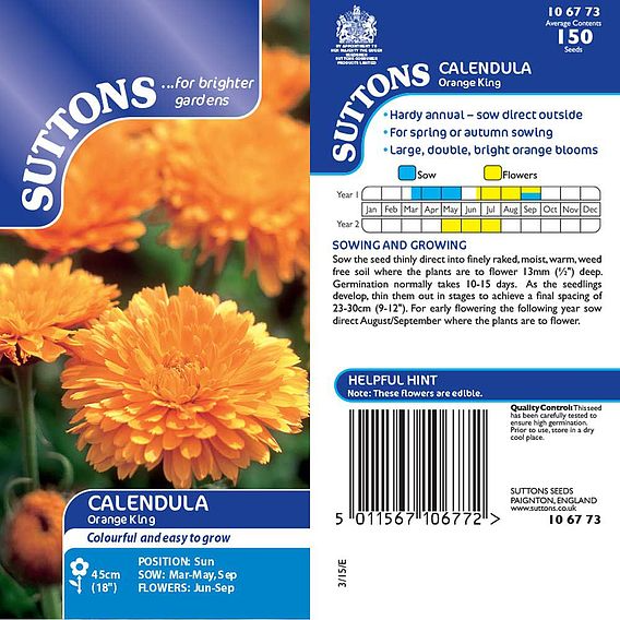SUTTONS CALENDULA 'ORANGE KING' - SEEDS
