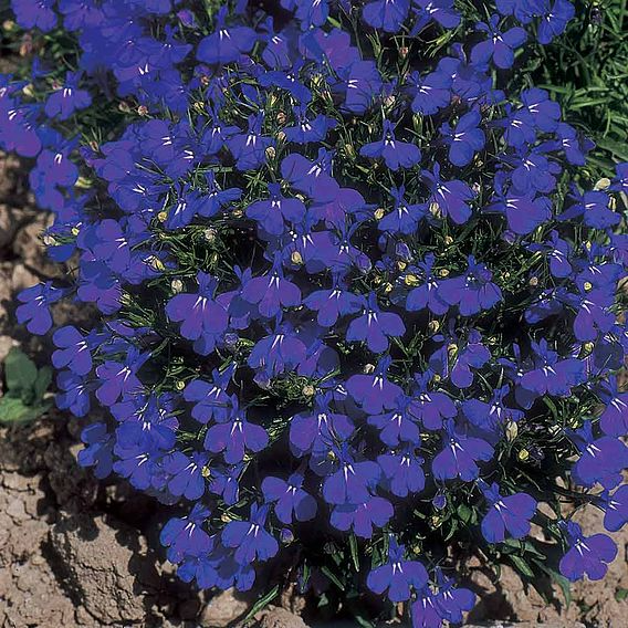 Dark foliage and deep blue flowers. Compact plants covered with tiny flowers throughout the summer, usually grown as edging for beds and borders, often with alyssum. Bush variety. Height 10cm (4"). (SUPASEED - Our coated Supaseeds make it easy to sow this fine-seeded item.)