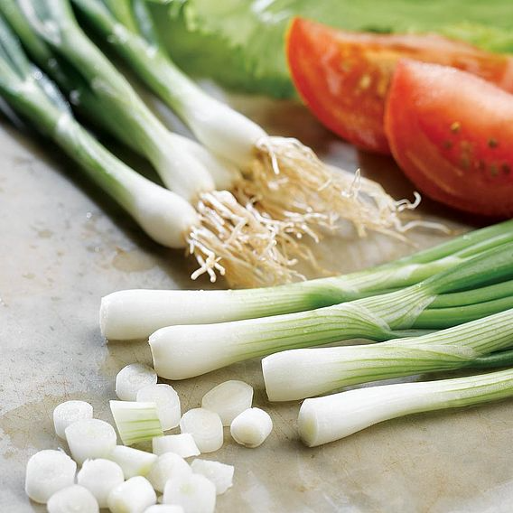 An ever popular spring onion, very quick growing, with silvery skin and mild flavour. Sow in succession March-early May, and in August or early September to overwinter. No thinning required. RHS Award of Garden Merit winner.