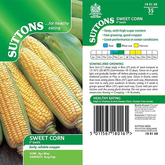 SUTTONS SWEET CORN F1 'SWIFT' - SEEDS