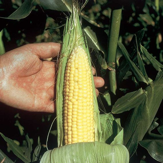 An early maturing, extra tender sweet corn with a high sugar content that gives a deliciously sweet flavour. It has a dwarf habit and improved performance in cold soils. Eat raw or cooked. RHS Award of Garden Merit winner. SUPERSWEET VARIETY - Has 2-3 times the sugar levels of ordinary sweet corns. Careful sowing in warm moist soil/seed compost is essential to ensure good germination.