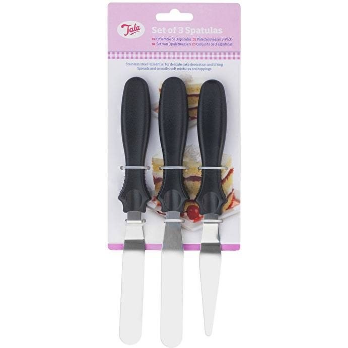 Small and sturdy, these 3 spatulas are perfect to create a beautiful finish for cupcakes, sponges and sandwiches.