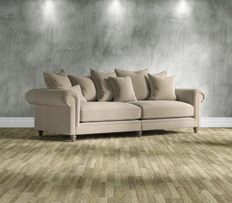 Generous scroll arms and comfortable sprung seats with feather-filled seat cushions and a sprung back offer superb support. The scatters feature feather fillings for that fabulous sink-in-your-seat feeling.