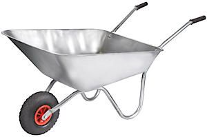 85L galvanised body and 2 piece galvanised frame with 10in Pneumatic wheel, ideal around the garden Supplied assembled